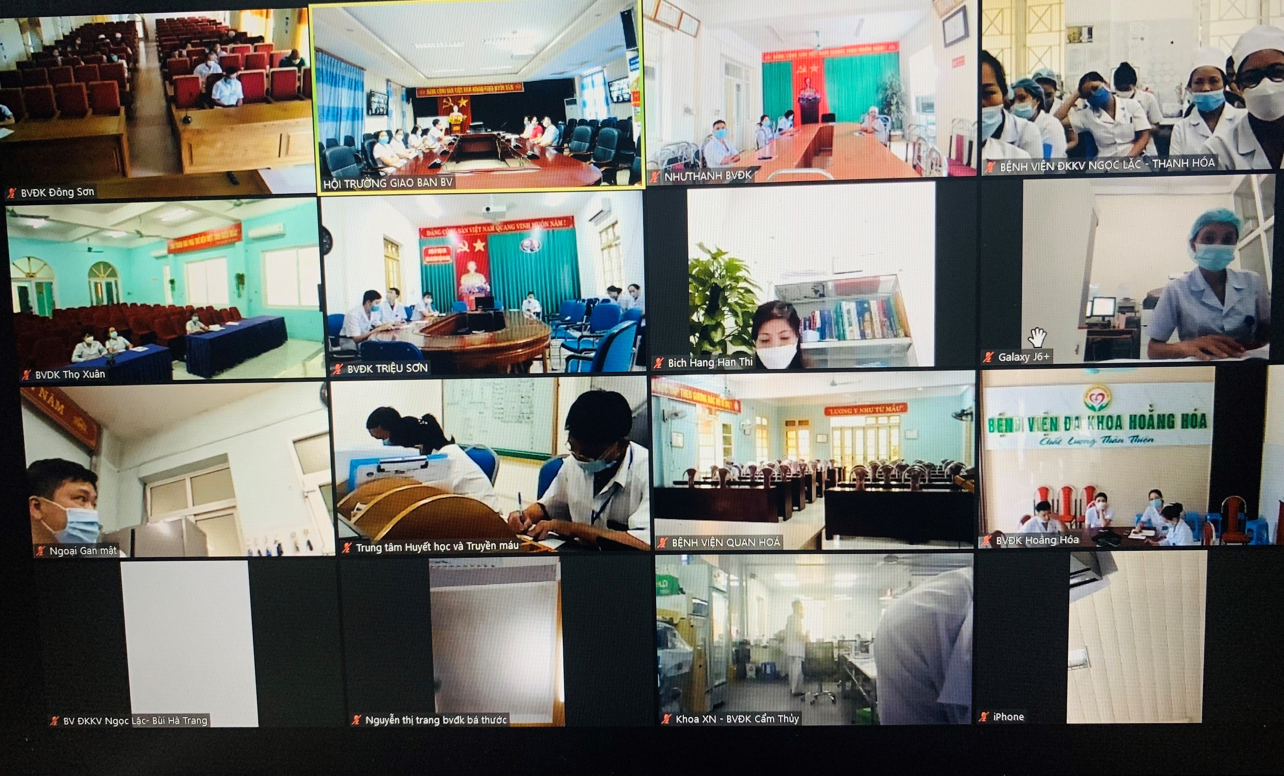 Nhằm cập nhật, nâng cao kiến thức về truyền máu và sử dụng các chế phẩm máu trong lâm sàng cho nhân viên y tế, chiều 07/10/2021, Bệnh viện Đa khoa tỉnh Thanh Hóa đã tổ chức chương trình Tập huấn trực tuyến về an toàn truyền máu cho các cơ sở y tế trên địa bàn tỉnh. Tham gia buổi tập huấn có hơn 80 điểm cầu đại diện cho các Bệnh viện công lập, ngoài công lập, các phòng khám tư nhân trên địa bàn tỉnh tham dự.
