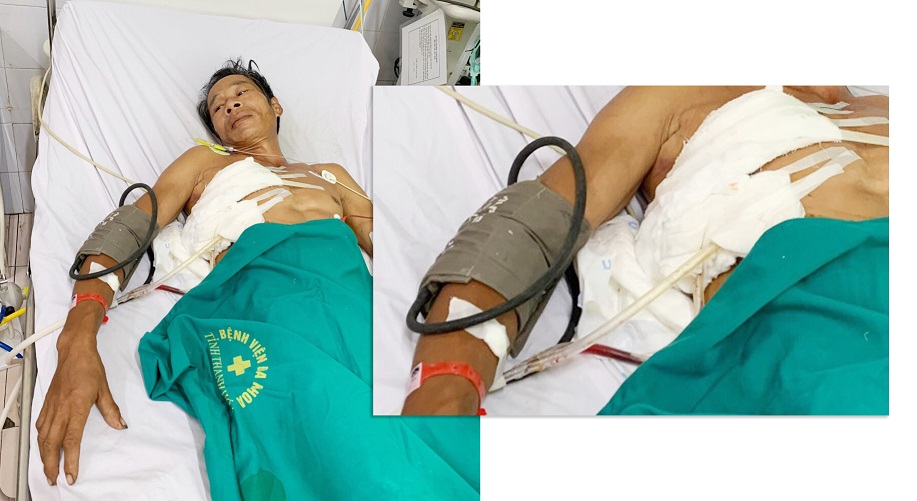 Bác sĩ gây mê Hoàng Mạnh Hồng bắt tay vào việc. Phẫu thuật viên Lưu Ngọc Hùng mở lồng ngực bệnh nhân, cắt, lọc, khâu, nối… Sau 3 tiếng, người đàn ông qua cơn nguy kịch, các vết cắt vào mạch máu, thương tổn ở ngực được xử lý và chuyển về khu hồi sức để theo dõi.