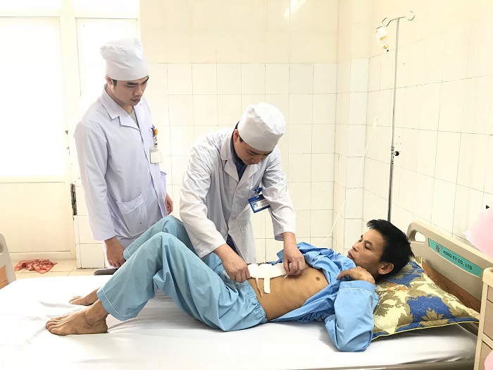 Các bác sĩ thăm khám cho bệnh nhân trước khi xuất viện. Bệnh nhân là