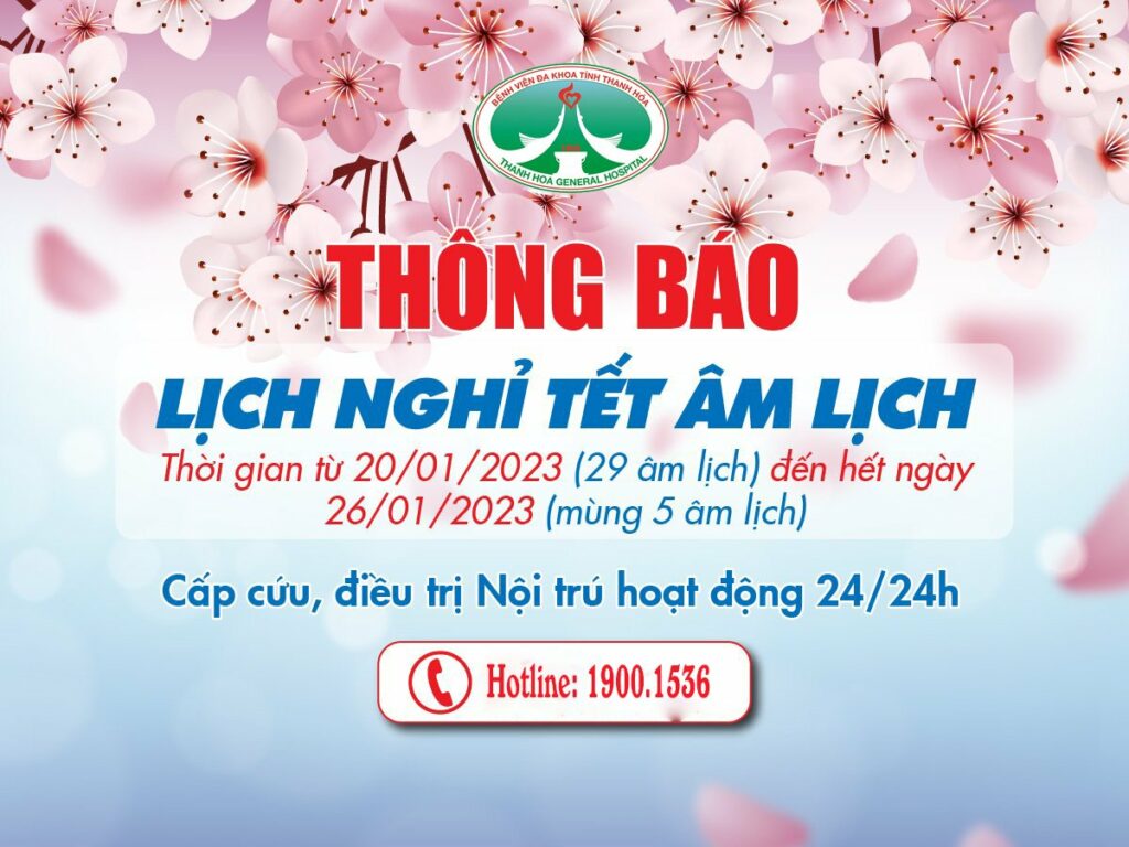 Bệnh viện Đa khoa tỉnh Thanh Hóa trân trọng thông báo lịch nghỉ Tết Nguyên