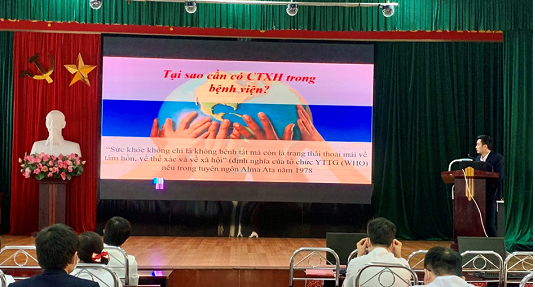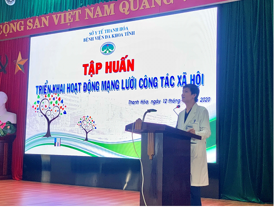 Để mở rộng quy mô hoạt động và nâng cao hiệu quả của các chương trình công tác xã hội tại Bệnh viện, ngày 12/11/2020, Phòng Công tác xã hội đã tổ chức tập huấn triển khai hoạt động mạng lưới Công tác xã hội cho toàn thể thành viên mạng lưới Công tác xã hội tại các Khoa, Phòng, Trung. Tại buổi tập huấn, các thành viên tham dự đã được Ths.Nguyễn Văn Hòa – Phó trưởng phòng Công tác xã hội trình bày các kiến thức tổng quan về CTXH trong y tế, mô hình và phương pháp tổ chức hoạt động Công tác xã hội tại Bệnh viên Đa khoa tỉnh Thanh Hóa.