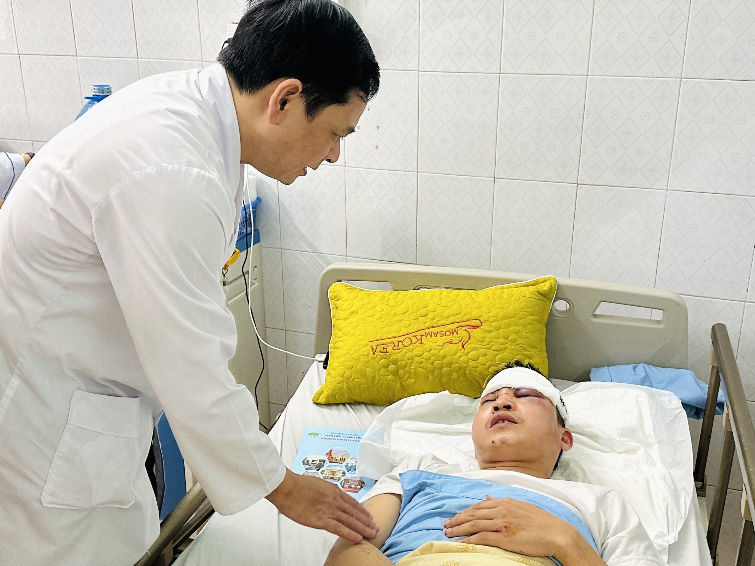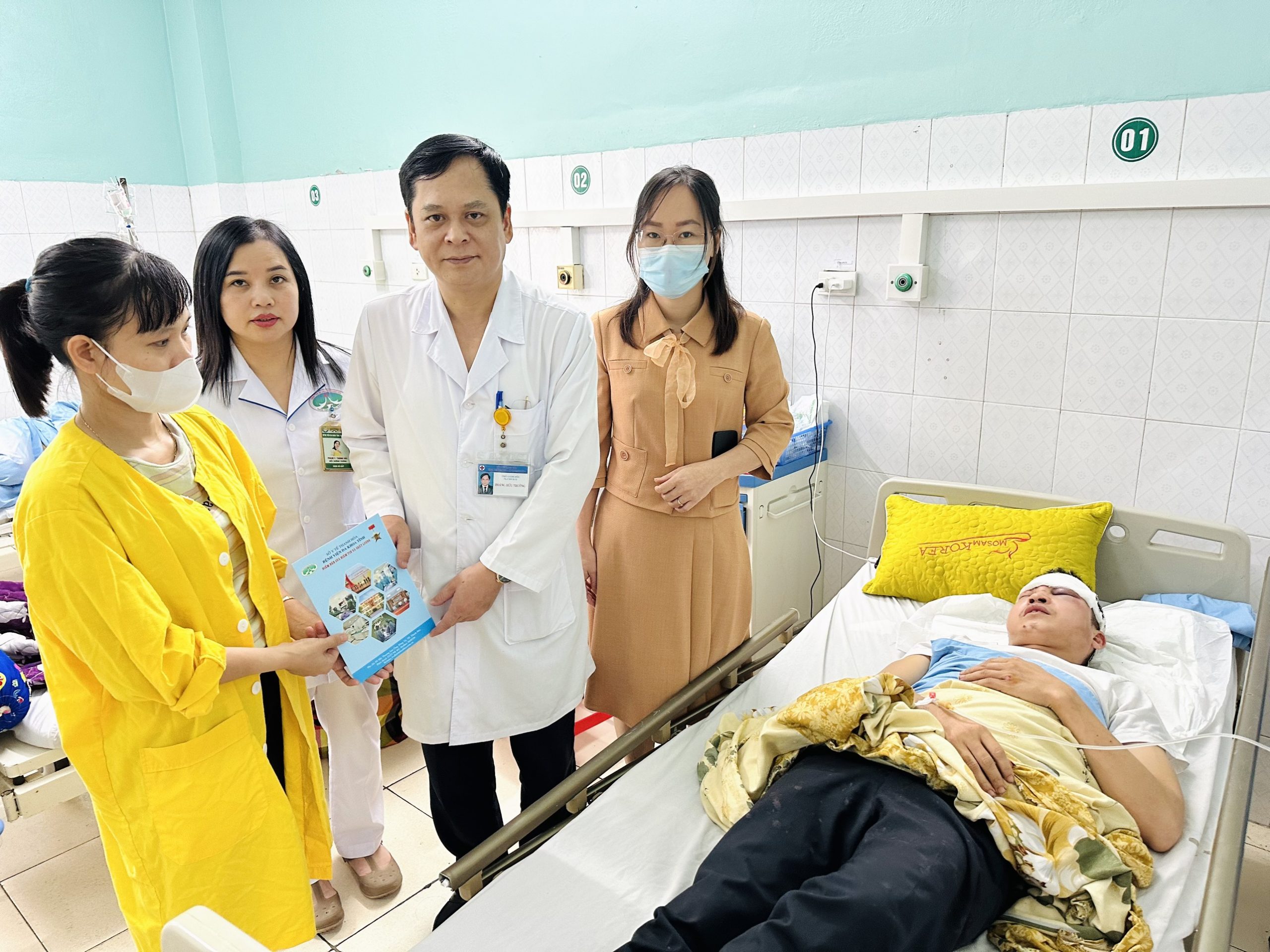 BSCKII Hoàng Hữu Trường – Phó Giám đốc Bệnh viện cũng đại diện các phòng chức năng, khoa PTTK-LN thăm hỏi, động viên và tặng quà cho người nhà chị Nguyễn Thị Tươi