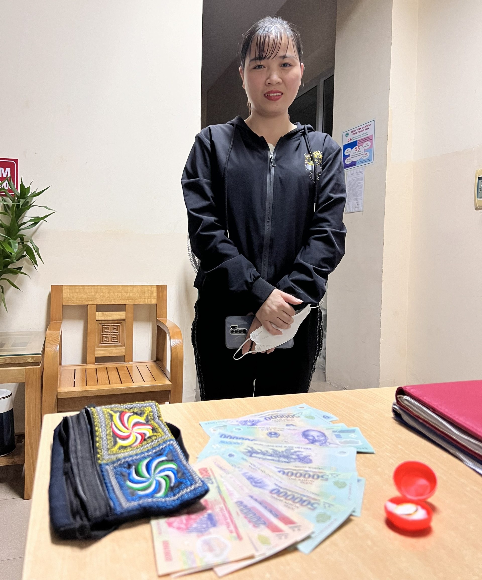 Chị Nguyễn Thị Tươi trao trả lại chiếc ví và toàn bộ tài sản nhặt được cho người mất