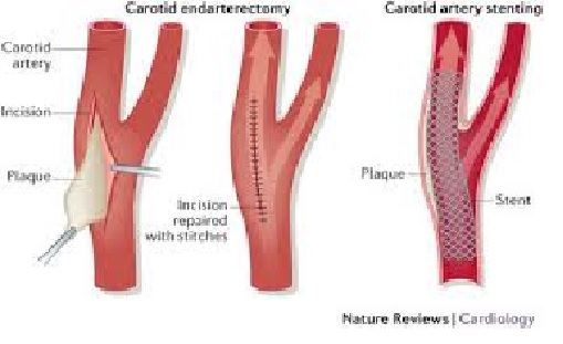 – Phẫu thuật tạo hình động mạch cảnh và stenting, nếu mức độ hẹp khó khăn để làm phẫu thuật quá mạo hiểm. các bác sỹ gây tê cục bộ và một quả bóng nhỏ được luồn bằng ống thông vào khu vực bị hẹp. Bong bóng được bơm phồng lên để mở rộng động mạch, và một cuộn dây lưới nhỏ (stent) được đưa vào để giữ cho động mạch không thu hẹp lại.