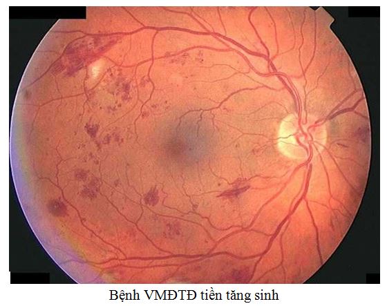 – Bệnh VMĐTĐ tiền tăng sinh (PPDR): tất cả các sang thương gây thiếu máu cục bộ võng mạc, biến đổi tiểu tĩnh mạch dưới dạng chuỗi hạt, các tiểu động mạch thu hẹp và tắc nghẽn, nốt dạng bông, xuất huyết dạng vết, những bất thường vi mạch
