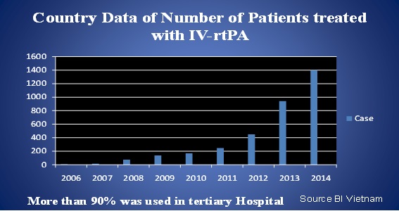 Số liệu quốc gia cho thấy số bệnh nhân được sử dụng thuốc tiêu sợi huyết tại Việt Nam năm 2014 là 1400 bệnh nhân