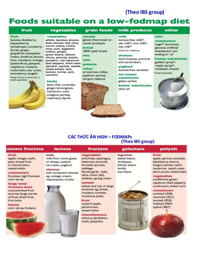 – Gần đây, nhiều tác giả khuyến cáo chế độ ăn hạn chế FODMAPS (Fermentable Oligosaccharides, Disaccharides, Monosaccharides And Polyols) với cơ sở cho rằng các nhóm thức ăn thường gây đầy hơi, tiêu chảy và tăng cảm giác đau bụng. Tuy chưa có nhiều bằng chứng đầy đủ về lợi ích thực sự của tiết thực giảm FODMAPS nhưng do điều trị này khá an toàn và không tốn kém nên cũng thu hút được sự quan tâm áp dụng của nhiều thầy thuốc hiện nay.