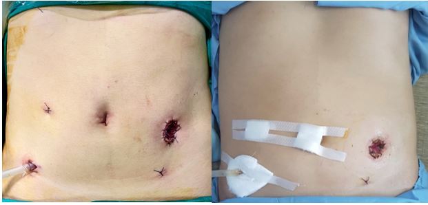 Hình ảnh ngay sau mổ (trái) và 3 ngày sau mổ (phải)