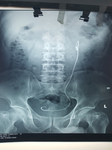 Hình ảnh X-quang đặt sonde JJ trước mổ 2 tuần.