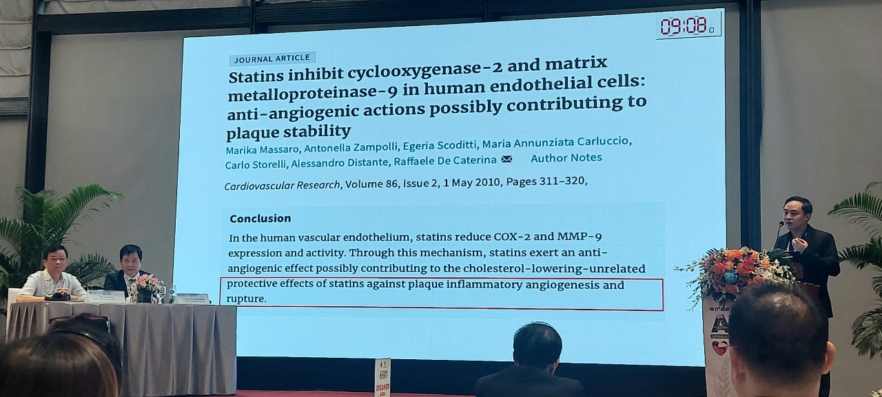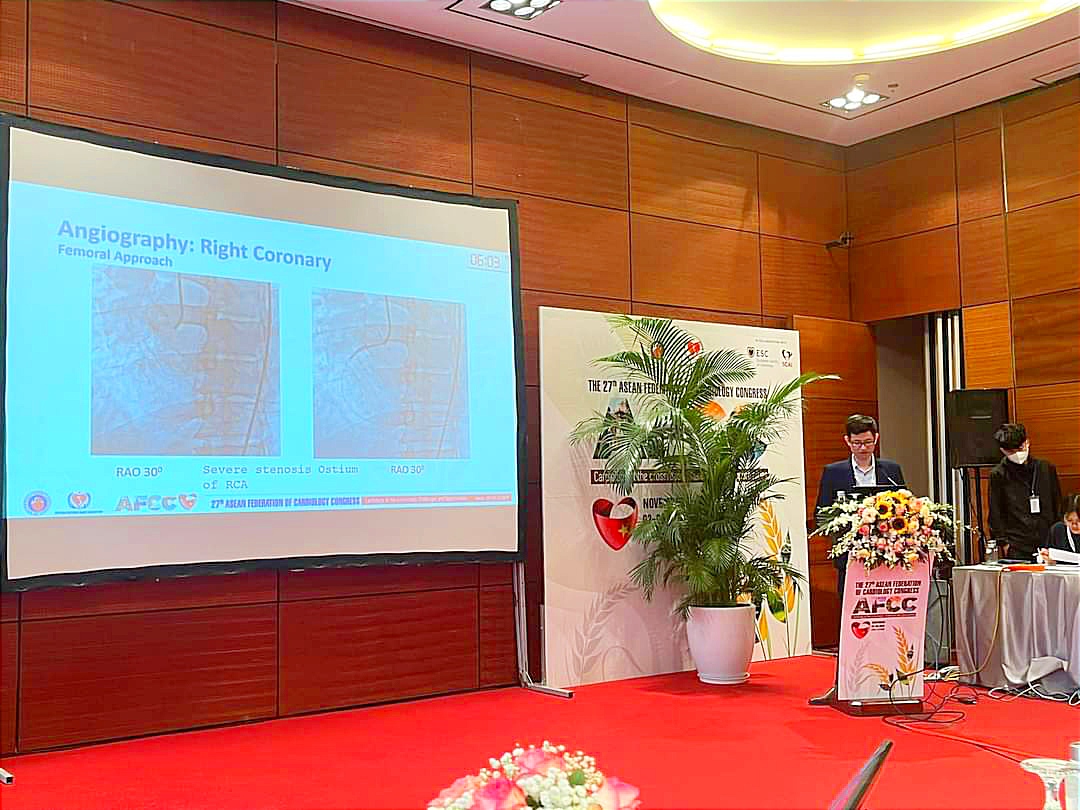 Thạc sĩ, bác sĩ Dương Quang Hiệp trình bày báo cáo bằng tiếng Anh chủ đề: “Iatrogenic Aortocoronary Dissection During Percutaneous Coronary Intervention: A case report – Lóc tách động mạch chủ ngực khi can thiệp: Báo cáo ca lâm sàng” tại Đại hội