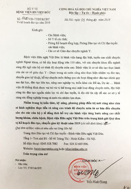 Kế hoạch đào tạo năm 2019 của Trung tâm Đào tạo và Chỉ đạo tuyến – Bệnh viện Hữu nghị Việt Đức. Nội dung chi tiết xin vui lòng xem tại File đính kèm Tài liệu đi kèm:Kế hoạch Đào tạo liên tục năm 2019
