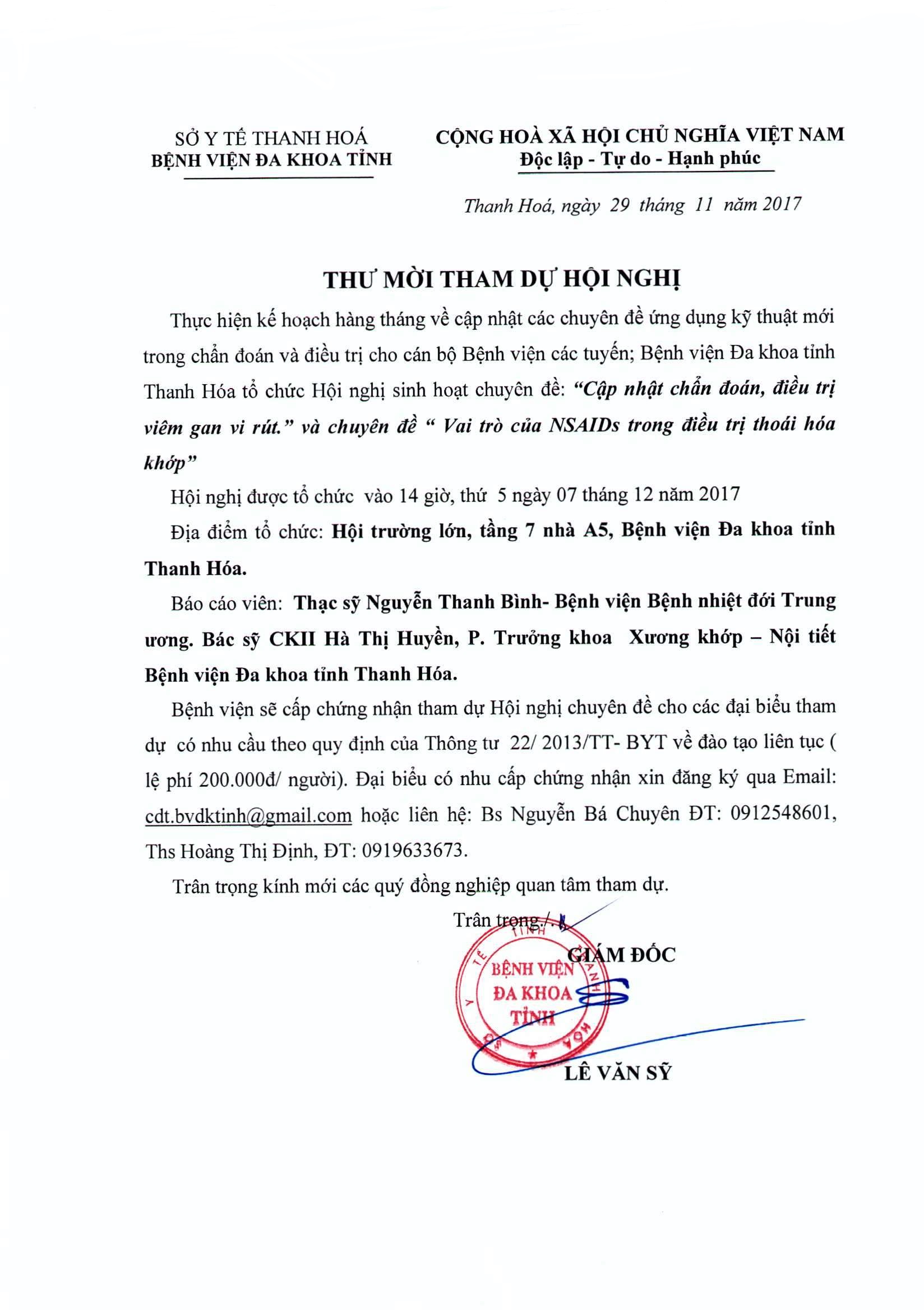 Thư mời tham dự Hội nghị khoa học: Cập nhật chẩn đoán, điều trị viêm gan Virus và Vai trò của NSAIDs trong điều trị thoái hóa khớp