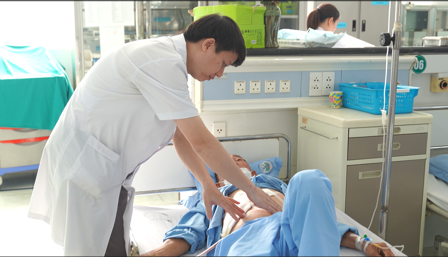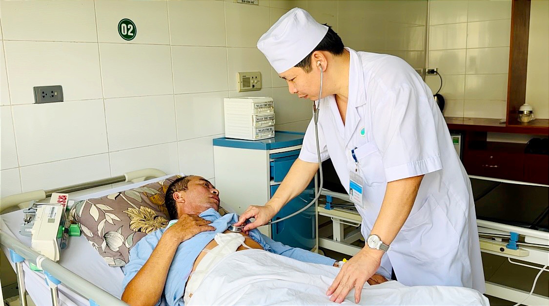 Các bác sĩ thăm khám cho bệnh nhân Nguyễn Văn N. sau phẫu thuật