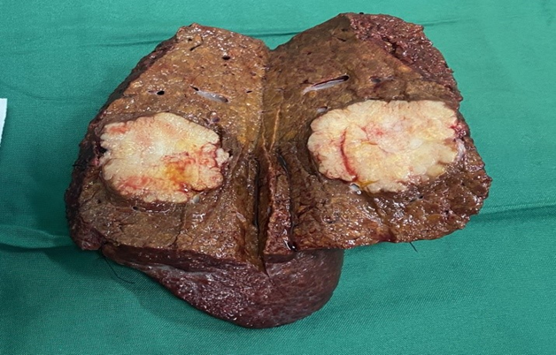 Hai trường hợp bệnh nhân được phẫu thuật gần đây nhất là bệnh nhân Nguyễn Văn N. (53 tuổi, Tùng Lâm, Nghi Sơn, Thanh Hóa) có tiền sử hút thuốc lá, thuốc lào khá nhiều kèm theo viêm gan B. Gần đây, bệnh nhân xuất hiện mệt mỏi, ăn uống kém, đau tức hạ sườn phải nên đã đến khám và được các bác sĩ chỉ định nhập viện điều trị nội trú tại Khoa Ngoại tiêu hóa – Gan mật, Bệnh viện Đa khoa tỉnh Thanh Hoá. Qua thăm khám, làm xét nghiệm cận lâm sàng và chụp cắt lớp vi tính ổ bụng cho thấy bệnh nhân có khối u ở hạ phân thùy VI, kích thước 43 x 68 mm.
