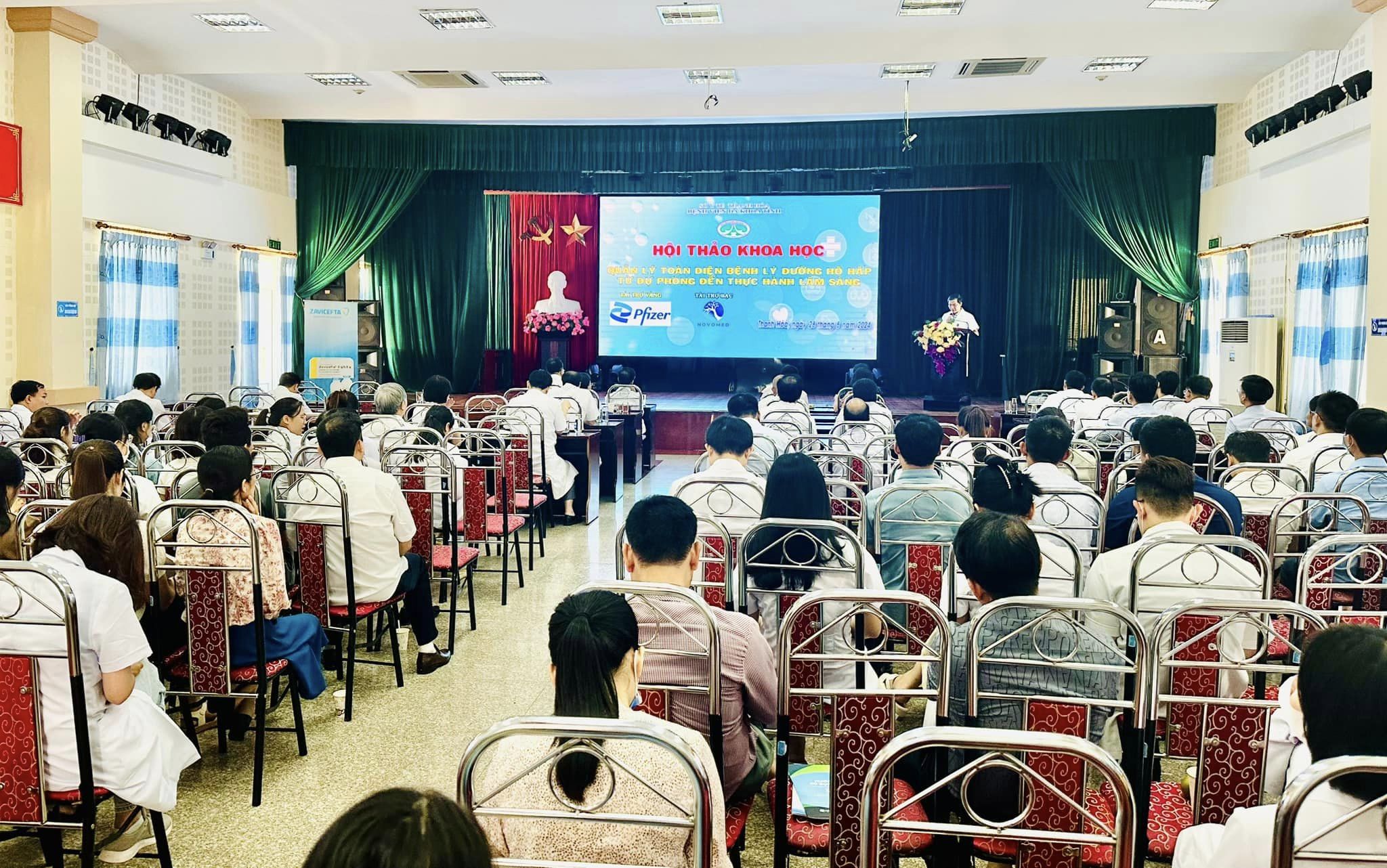 Chiều 20/8, Bệnh viện Đa khoa tỉnh Thanh hóa tổ chức Hội thảo khoa học “Quản lý toàn diện bệnh lý đường hô hấp: Từ dự phòng đến thực hành lâm sàng”với sự tham dự của đông đảo các bác sĩ đang công tác tại Bệnh viện Đa khoa tỉnh Thanh Hoá và các cơ sở y tế trên địa bàn tỉnh. Hội thảo có sự tham gia báo cáo và chủ trì của các chuyên gia đang công tác tại Bệnh viện Bạch Mai, Bệnh viện Phổi Trung ương và Bệnh viện Đa khoa tỉnh Thanh Hoá.