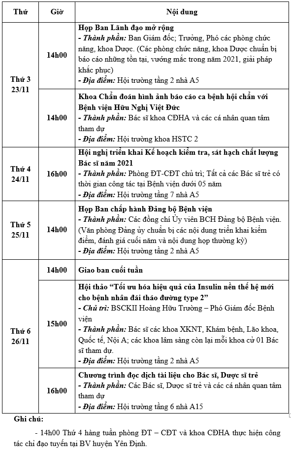 Lịch công tác tuần từ 22/11/2021 đến ngày 26/11/2021