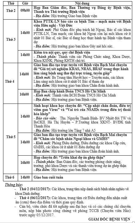 Lịch công tác tuần từ ngày 04/12/2017 đến ngày 08/12/2017 Tài liệu đi kèm:Lịch công tác tuần (file word)