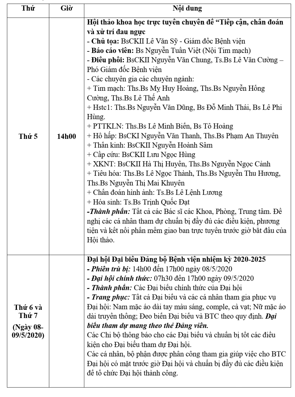 Lịch công tác tuần từ ngày 04/5/2020 đến ngày 09/5/2020 Tài liệu đi kèm:Lịch công tác tuần (File word)
