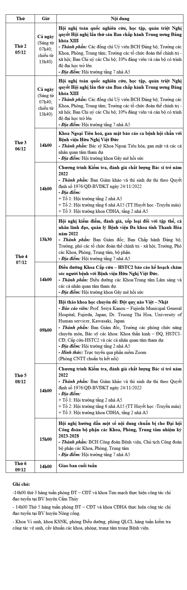 Lịch công tác tuần từ ngày 05/12/2022 đến ngày 09/12/2022 Tài liệu đi kèm:Lịch công tác tuần (File word)