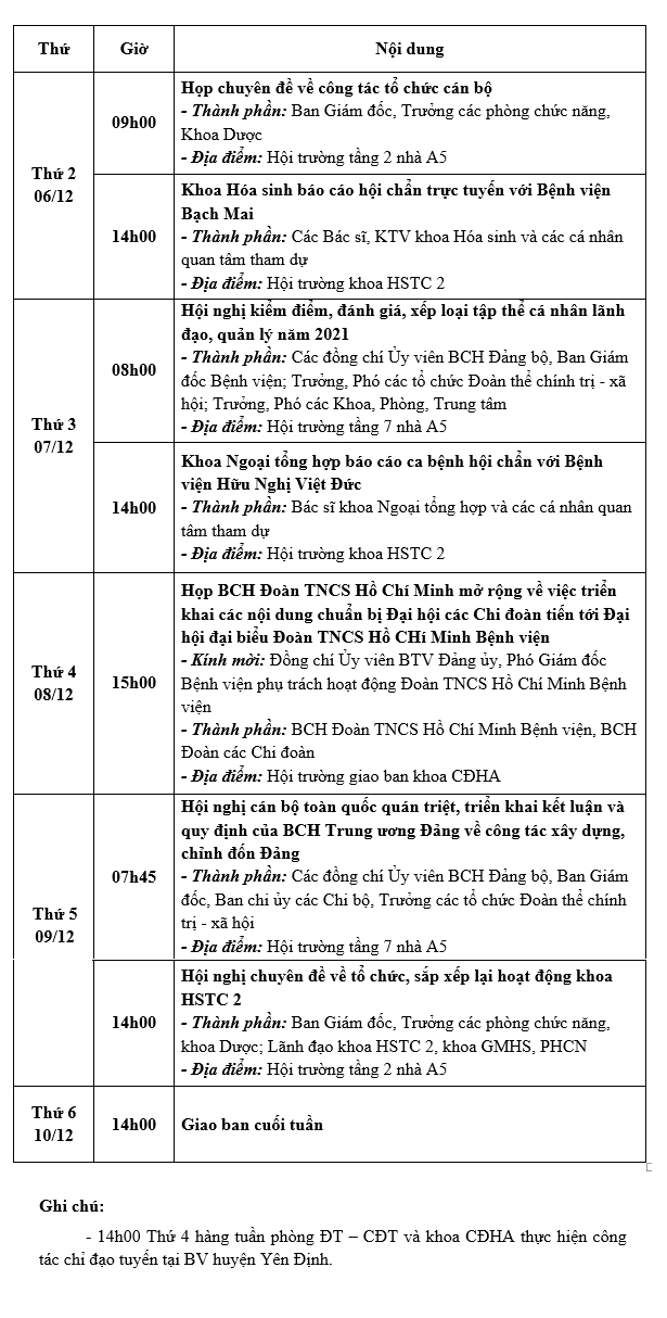 Lịch công tác tuần từ ngày 06/12/2021 đến ngày 10/12/2021 Tài liệu đi kèm:Lịch công tác tuần (File word)