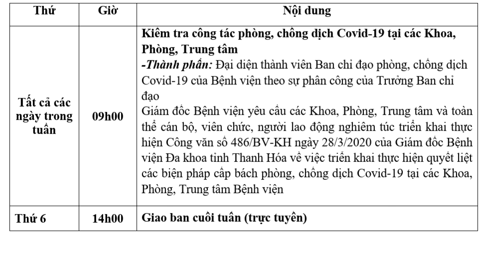 Lịch công tác tuần từ ngày 06/4/2020 đến ngày 10/4/2020 Tài liệu đi kèm:Lịch công tác tuần (File word)