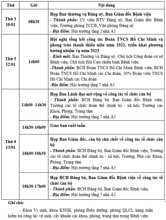 Lịch công tác tuần từ ngày 09/01/2023 đến ngày 13/01/2023 Tài liệu đi kèm:Lịch công tác tuần (File word)