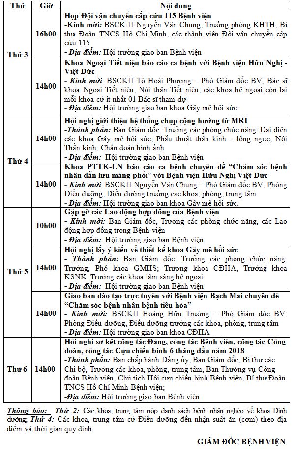 Lịch công tác tuần từ ngày 09/7/2018 đến ngày 13/7/2018 Tài liệu đi kèm:Lịch công tác tuần (file word)