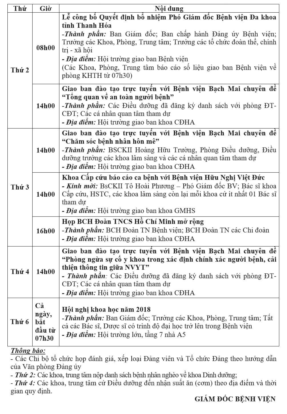 Lịch công tác tuần từ ngày 10/12/2018 đến ngày 14/12/2018 Tài liệu đi kèm:Lịch công tác tuần ( bản word)