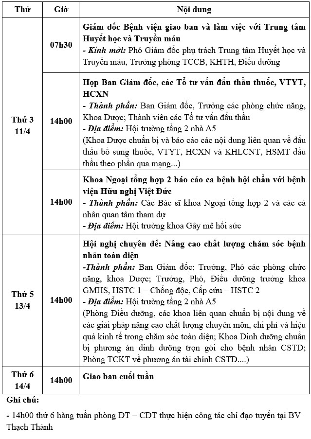 Lịch công tác tuần từ ngày 10/4/2023 đến ngày 14/4/2023 Tài liệu đi kèm:Lịch công tác tuần (File word)