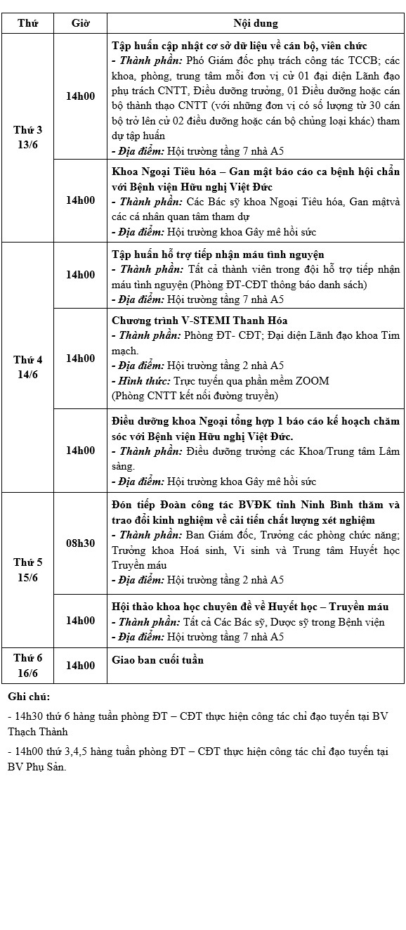 Lịch công tác tuần từ ngày 12/6/2023 đến ngày 16/6/2023 Tài liệu đi kèm:Lịch công tác tuần (File word)