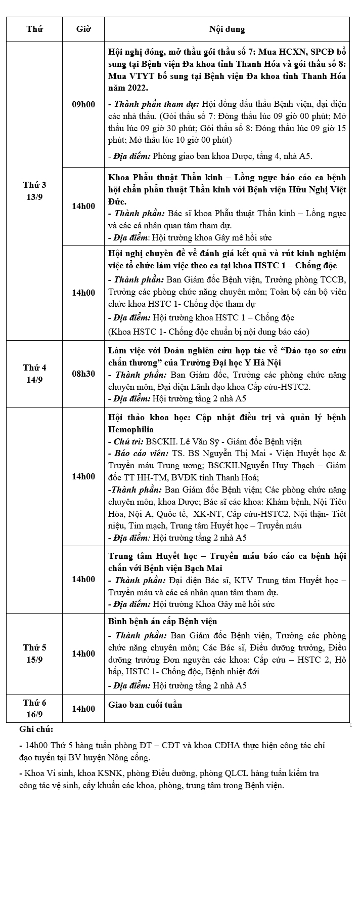 Lịch công tác tuần từ ngày 12/9/2022 đến ngày 16/9/2022 Tài liệu đi kèm:Lịch công tác tuần (File word)