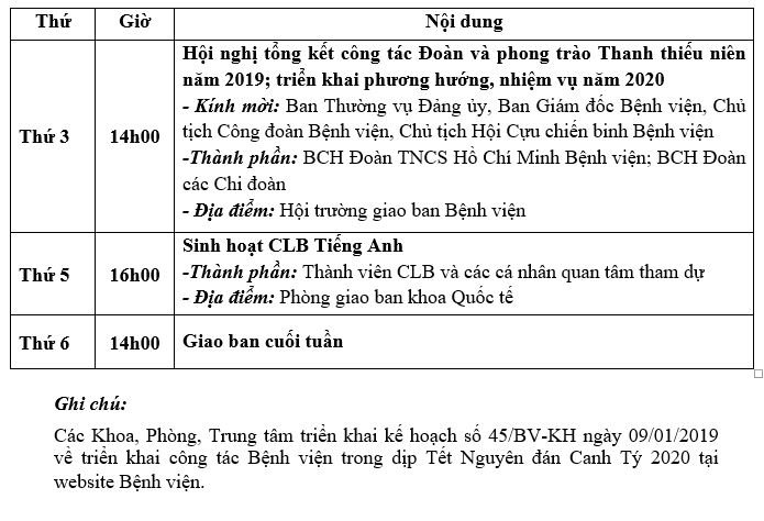 Lịch công tác tuần từ ngày 13/01/2020 đến ngày 17/01/2020 Tài liệu đi kèm:Lịch công tác tuần (File word)