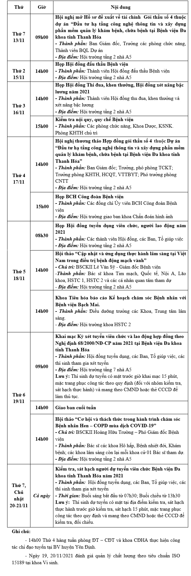 Lịch công tác tuần từ ngày 13/11/2021 đến ngày 21/11/2021 Tài liệu đi kèm:Lịch công tác tuần (File Word)