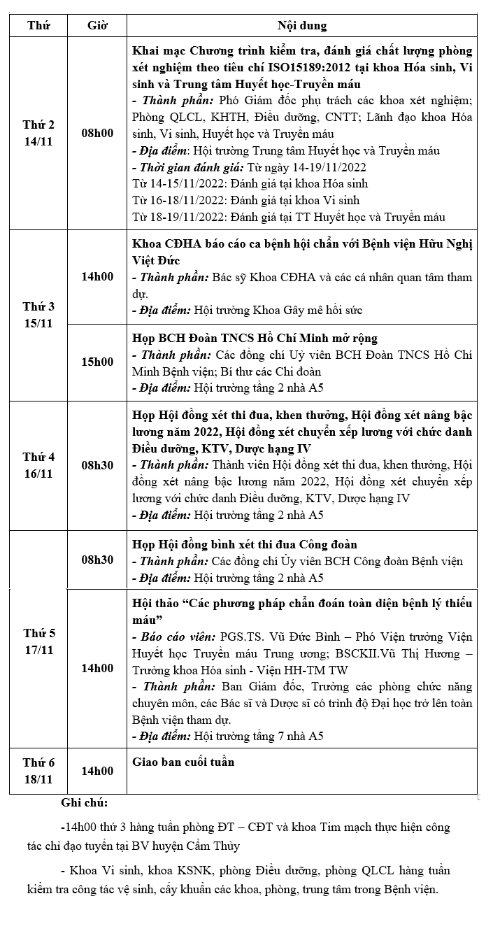Lịch công tác tuần từ ngày 14/11/2022 đến ngày 18/11/2022 Tài liệu đi kèm:Lịch công tác tuần (File word)