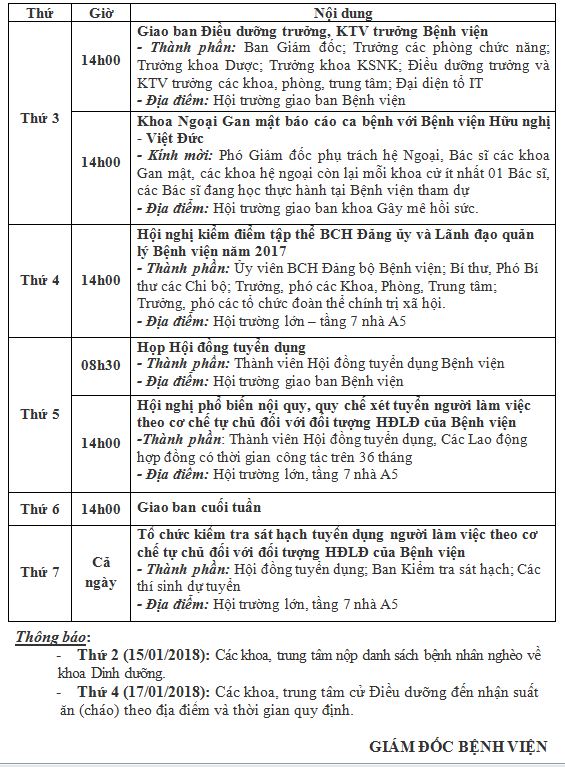Lịch công tác tuần từ ngày 15/01/2018 đến ngày 20/01/2018 Tài liệu đi kèm:Lịch công tác tuần (Bản word)