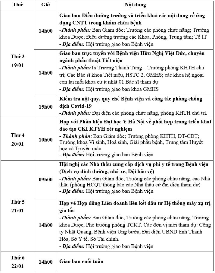 Lịch công tác tuần từ ngày 18/01/2021 đến ngày 22/01/2021 Tài liệu đi kèm:Lịch công tác tuần (File word)