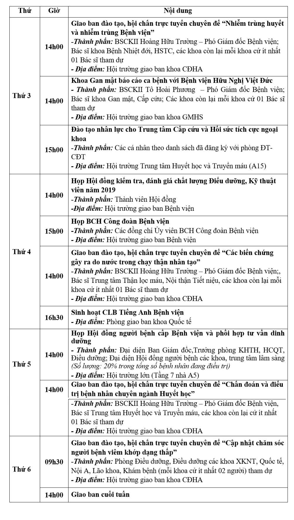 Lịch công tác tuần từ ngày 18/11/2019 đến 22/11/2019