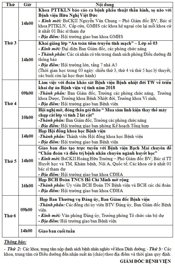 Lịch công tác tuần từ ngày 19/11/2018 đến ngày 23/11/2018 Tài liệu đi kèm:Lịch công tác tuần (Bản word)