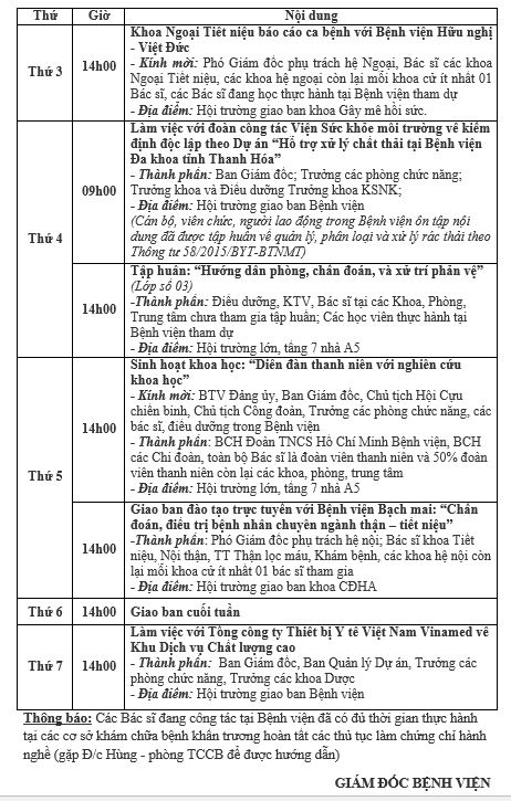 Lịch công tác tuần từ ngày 19/3/2018 đến ngày 23/3/2018