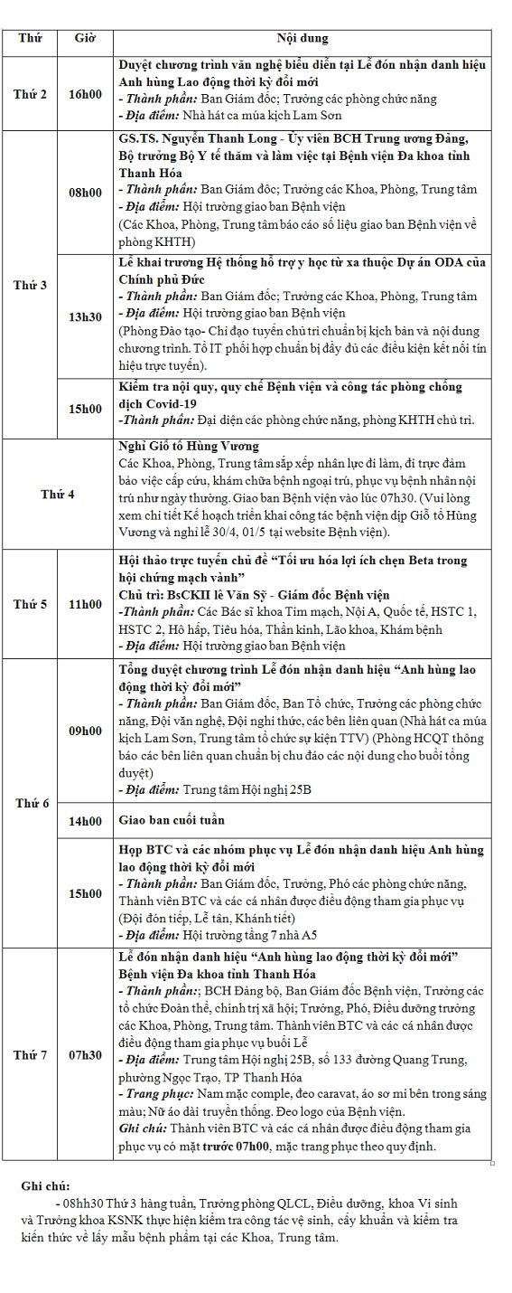 Lịch công tác tuần từ ngày 19/4/2021 đến ngày 24/4/2021 Tài liệu đi kèm:Lịch công tác tuần (File word)