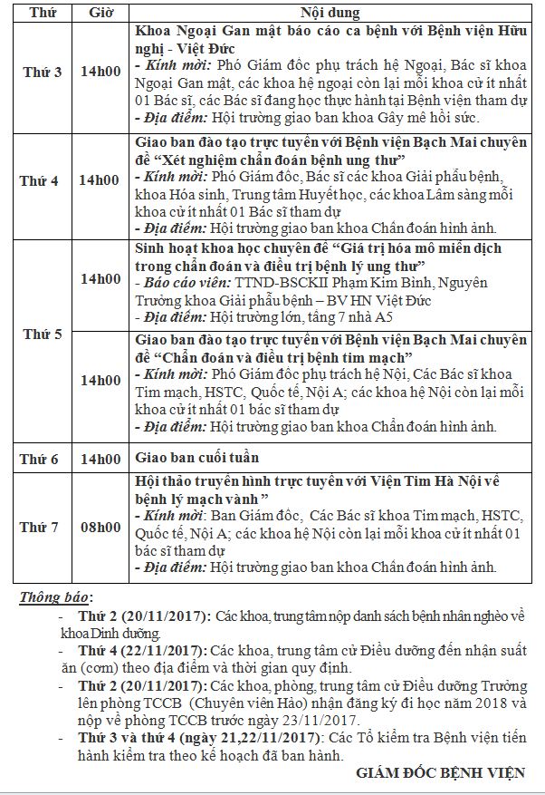 Lịch công tác tuần từ ngày 20/11/2017 đến ngày 25/11/2017 Tài liệu đi kèm:Lịch công tác tuần (Bản word)
