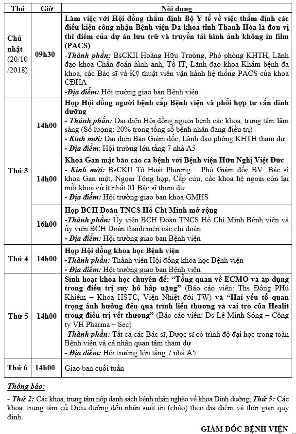 Lịch công tác tuần từ ngày 21/10/2018 đến ngày 26/10/2018 Tài liệu đi kèm:Lịch công tác tuần ( File word)