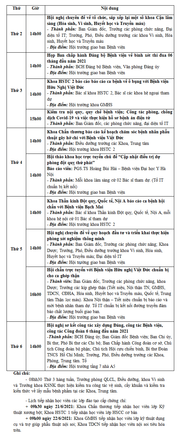 Lịch công tác tuần từ ngày 21/6/2021 đến ngày 25/6/2021 Tài liệu đi kèm:Lịch công tác tuần (File word)