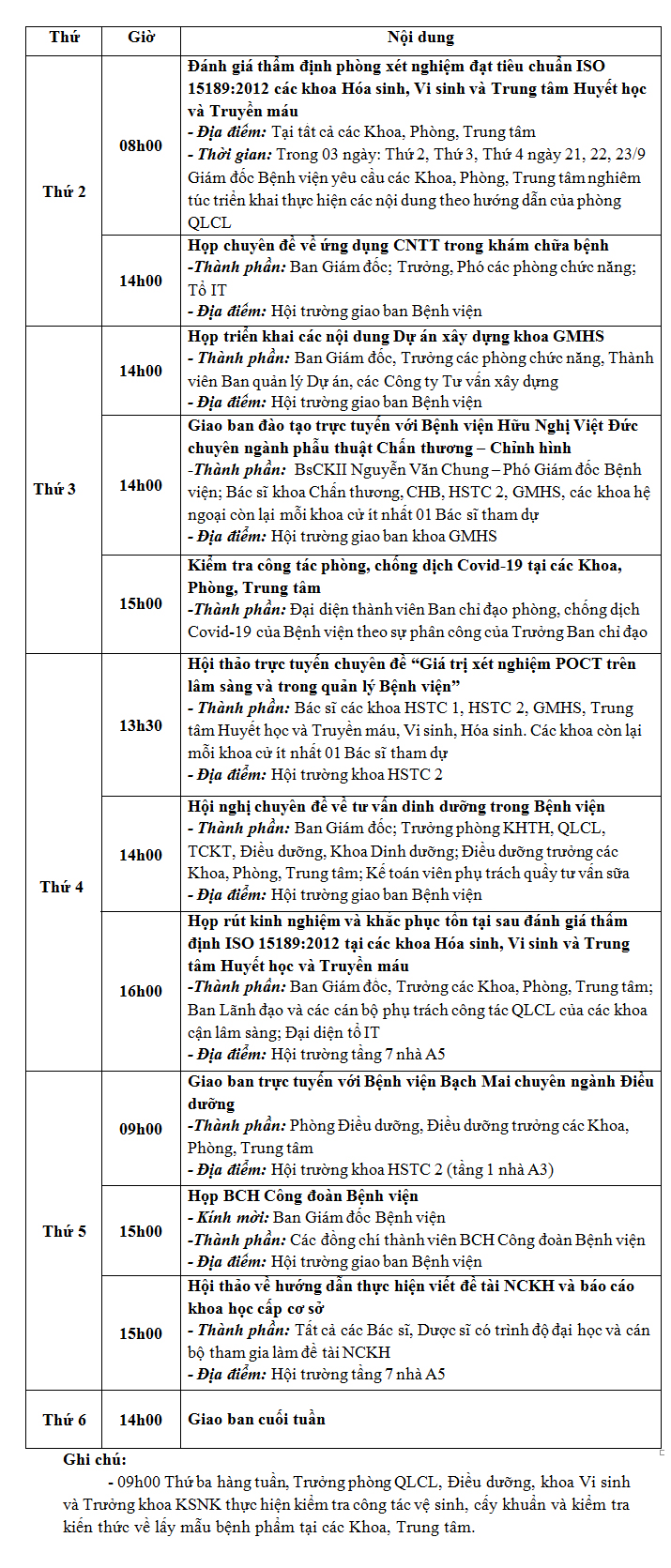 Lịch công tác tuần từ ngày 21/9/2020 đến ngày 25/9/2020 Tài liệu đi kèm:LỊch công tác tuần (File word)