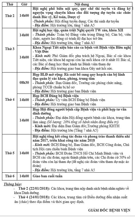 Lịch công tác tuần từ ngày 22/01/2018 đến ngày 26/01/2018 Tài liệu đi kèm:Lịch công tác tuần (bản word)