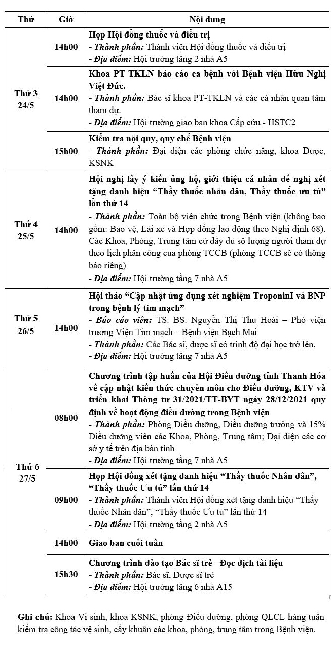 Lịch công tác tuần từ ngày 23/5/2022 đến ngày 27/5/2022 Tài liệu đi kèm:Lịch công tác tuần (File word)