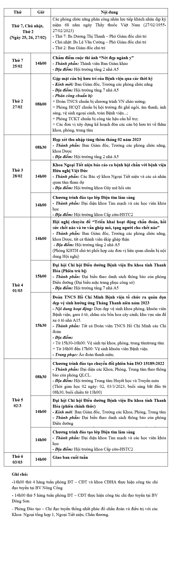Lịch công tác tuần từ ngày 25/02/2023 đến ngày 03/3/2023 Tài liệu đi kèm:Lịch công tác tuần (File word)