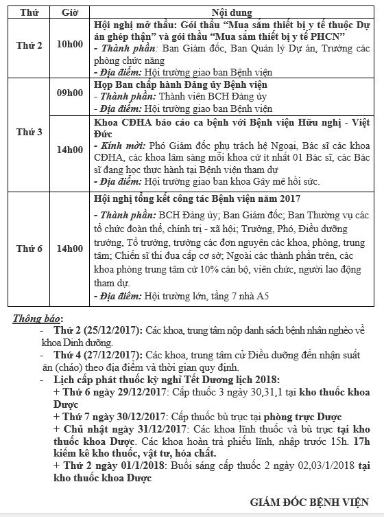 Lịch công tác tuần từ ngày 25/12/2017 đến ngày 29/12/2017 Tài liệu đi kèm:Lịch công tác tuần (file Word)