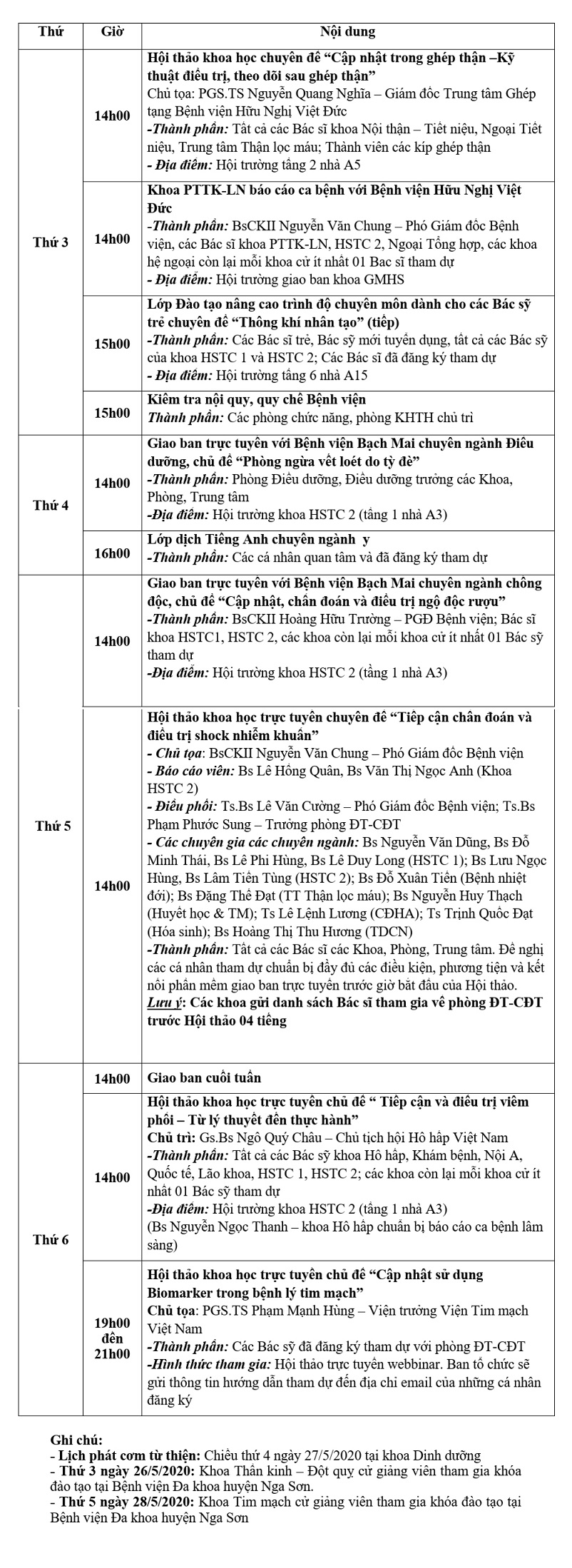 Lịch công tác tuần từ ngày 25/5/2020 đến ngày 29/5/2020 Tài liệu đi kèm:Lịch công tác tuần (File word)