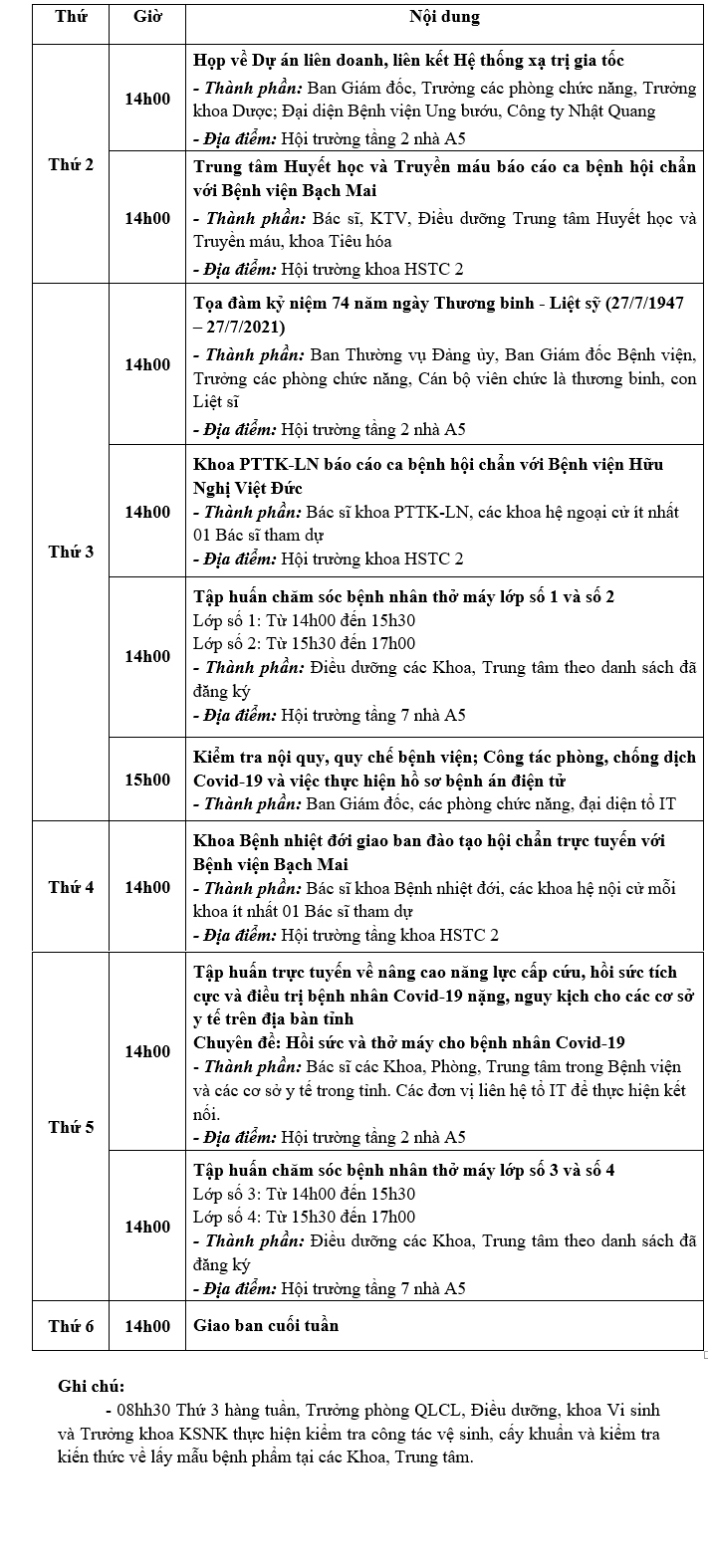Lịch công tác tuần từ ngày 26/7/2021 đến ngày 30/7/2021 Tài liệu đi kèm:Lịch công tác tuần (File word)